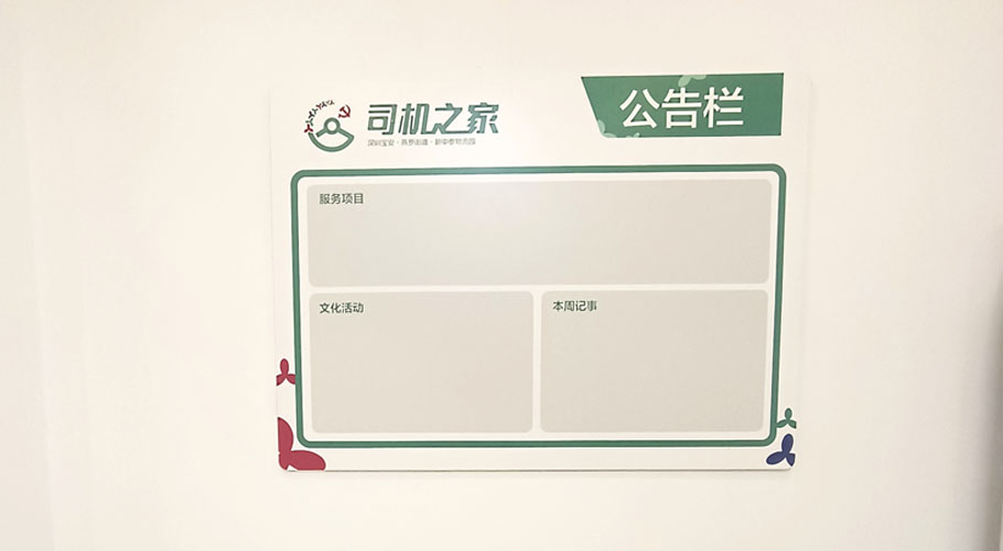 深圳市勤蜂廣告設(shè)計有限公司,應(yīng)部門單位的規(guī)劃需求,勇于當擔,負責承接深圳市寶安區(qū)松崗,沙井、福永、航城、西鄉(xiāng)和新安街道等片區(qū)中大型物流園司機之家的裝飾、廣告物料、司機文化墻、門頭招牌、形象背景墻、黨建文化墻、宣傳欄的制作和施工。