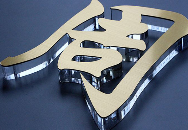應用于背景墻,以及小的門頭字,或大的門頭用于做小類目或地址電話之類的。主要是以水晶字為主,材料由有機玻璃板雕刻成形的;優(yōu)點是各種色板都有,像玻璃樣光澤、透亮、顯高檔,但不耐磨、易劃破、三到五年失去光澤;普遍應用于中小型企業(yè)公司或?qū)Yu店形象墻、門店招牌、門牌用字。一般是雙層的亞克力制作,下面是透明的亞克力(一般厚度有5mm,8mm,10mm),面板是3mm厚的帶顏色亞克力。采用粘合方法連接在一起,從側(cè)方看有水晶的效果,故俗稱“水晶字”。