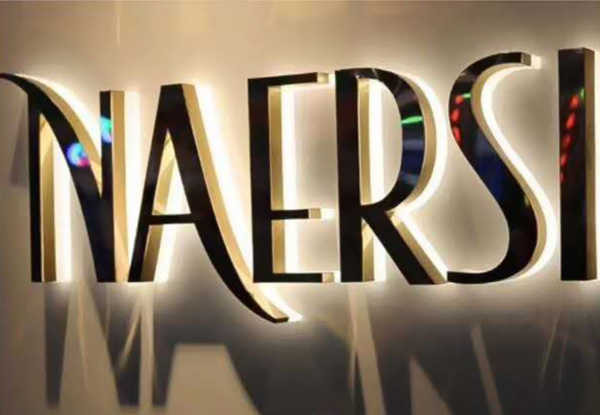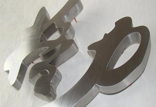 不銹鋼字,人們利用其"不銹"的特點,采用拋光(發(fā)紋)面即啞光處理,或直接采用8K(鏡面)處理,讓其炫目多彩,這種類型屬建筑流派中的光亮派的一種,但兩種處理有個共同缺點,缺乏個性,因為多年來人們多選用這種工藝,固其個性不彰顯;在戶外燦爛的陽光下,可能因金屬的折射原因,令文字筆畫不清晰,而在陰雨天,金屬因失去光澤或蒙灰的緣故同樣顯得模糊?;谶@些因素,根據(jù)工藝的不同,發(fā)展出更多顏色的電鍍不銹鋼產(chǎn)品,顏色豐富、種類多樣!受到銀行、機關(guān)單位、房地產(chǎn)行業(yè)、金融行業(yè)用語做LOGO背景墻|形象墻|文化墻