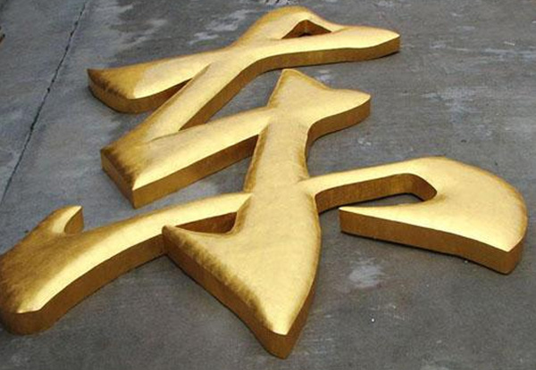 銅字不易生銹,它的顏色只有一種,即金黃色,給人感覺富麗堂皇、很威嚴。許多政府單位用得多,像外樓的字、門牌、行政牌等。銅,亦是較易氧化的金屬,因此常將它進行電鍍或完成字形加工后將表面拋光處理,再做封閉漆(防銹),使其金光閃閃,凸顯出來的效果更好。