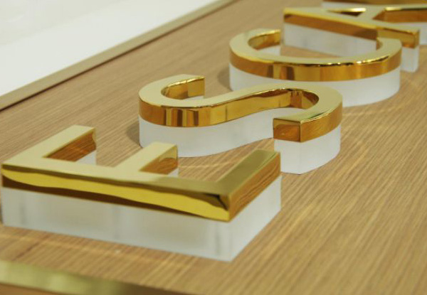 應用于背景墻,以及小的門頭字,或大的門頭用于做小類目或地址電話之類的。主要是以水晶字為主,材料由有機玻璃板雕刻成形的;優(yōu)點是各種色板都有,像玻璃樣光澤、透亮、顯高檔,但不耐磨、易劃破、三到五年失去光澤;普遍應用于中小型企業(yè)公司或?qū)Yu店形象墻、門店招牌、門牌用字。一般是雙層的亞克力制作,下面是透明的亞克力(一般厚度有5mm,8mm,10mm),面板是3mm厚的帶顏色亞克力。采用粘合方法連接在一起,從側(cè)方看有水晶的效果,故俗稱“水晶字”。