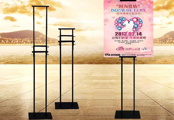 單面/雙面掛畫架,又稱為POP掛畫架,輕巧便攜、造型簡練、安裝方便、外觀大方,有單面或雙面安置畫面可選,能起到很好的展示宣傳效果。底座體積較小,不占用空間,畫面寬度任意,一般適配50*70厘米或60*120厘米KT板,尺寸都可以自由調(diào)節(jié),畫架最高可調(diào)至2米,適用于企業(yè)產(chǎn)品宣傳、酒店,銀行,超市等營銷活動。