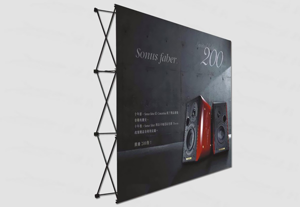 整體構(gòu)件,無需復(fù)雜組裝過程,體積小方,方便收起和攜帶,卡好畫面和展架的掛點即可展示內(nèi)容。受力不錯,可支起較大面積的噴繪畫面,常用尺寸有60*160厘米或80*180厘米。 常用于公司辦公室、會議室、公司前臺等公共場所,使用方便,宣傳力度好,是一款高性價比較產(chǎn)品。