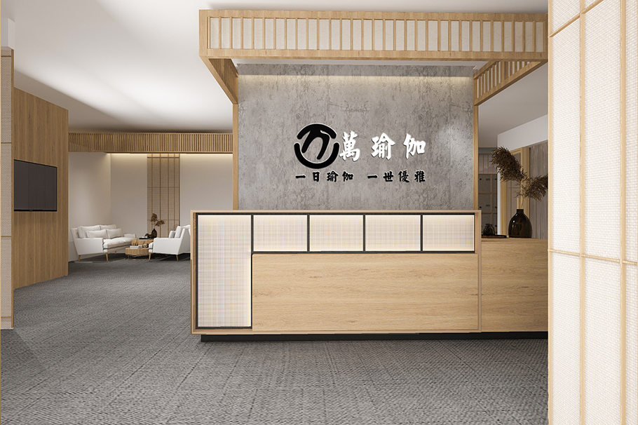 健身房瑜伽館店面形象墻背景墻設計,可時尚簡約風格,可科技新潮風格,可中式古韻風格。整體原則:輕松、柔和、親民。設計案例連鎖店形象墻采用現(xiàn)場簡約風格設計,定制鋁方通板做造型,異形吧臺和天花造型,采用定制工藝制作,簡潔時尚,符合品牌定位,LED燈條做氣氛烘托,整體立體感強烈,呈現(xiàn)清晰有檔次。
